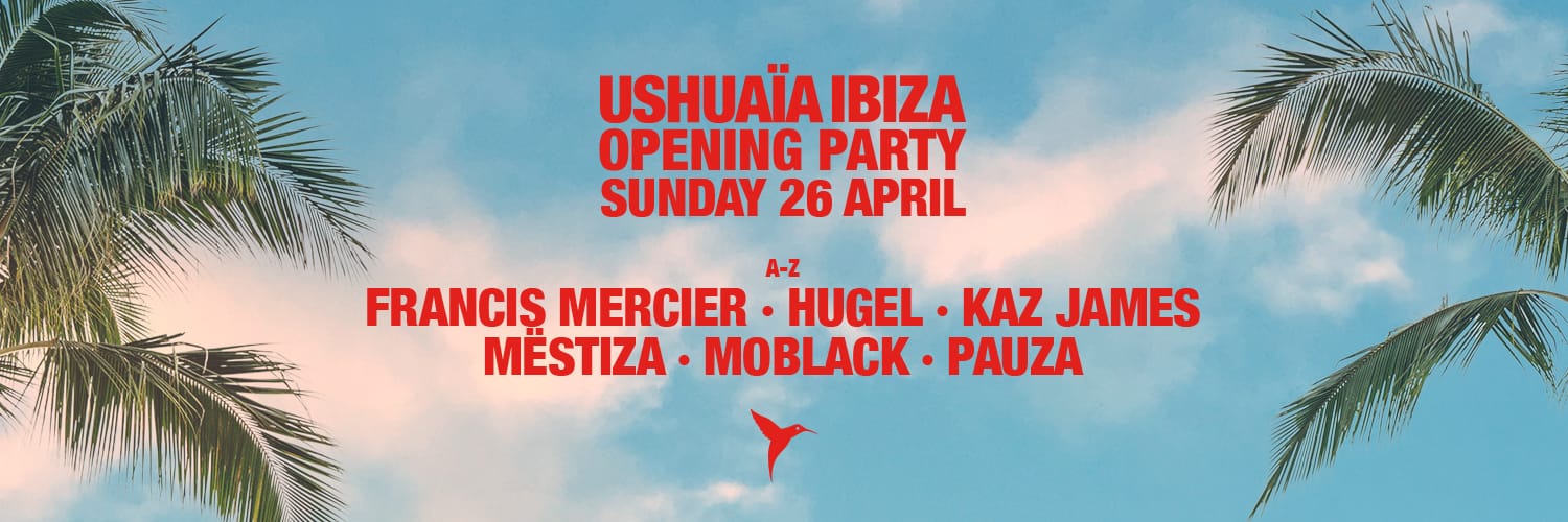 Como referencia absoluta de los eventos de día, esta temporada comienzan con la novedad de que Ushuaïa Ibiza celebrará su opening en domingo por primera vez en su historia, abriendo sus puertas el 26 de abril donde para esta ocasión el icónico escenario exterior contará con una programación formada por Francis Mercier - fundador de Deep Root Records - y que además estrena residencia en Hï Ibiza. Artista ampliamente reconocido por llevar el afro house y los sonidos multiculturales a otro nivel. Junto a él estarán: HUGEL, impulsor del auge internacional del latin house; Kaz James con su característico sonido deep y melódico; MËSTIZA que regresan a la isla tras una destacada temporada anterior con su inconfundible mezcla del house y techno con inspiración flamenca. Junto a ellos completan el cartel MoBlack, fundador de uno de los sellos mas influyentes del afro house y el dúo cubano PAUZA con una combinación de ritmos afrocaribeños y grooves de house envolventes.