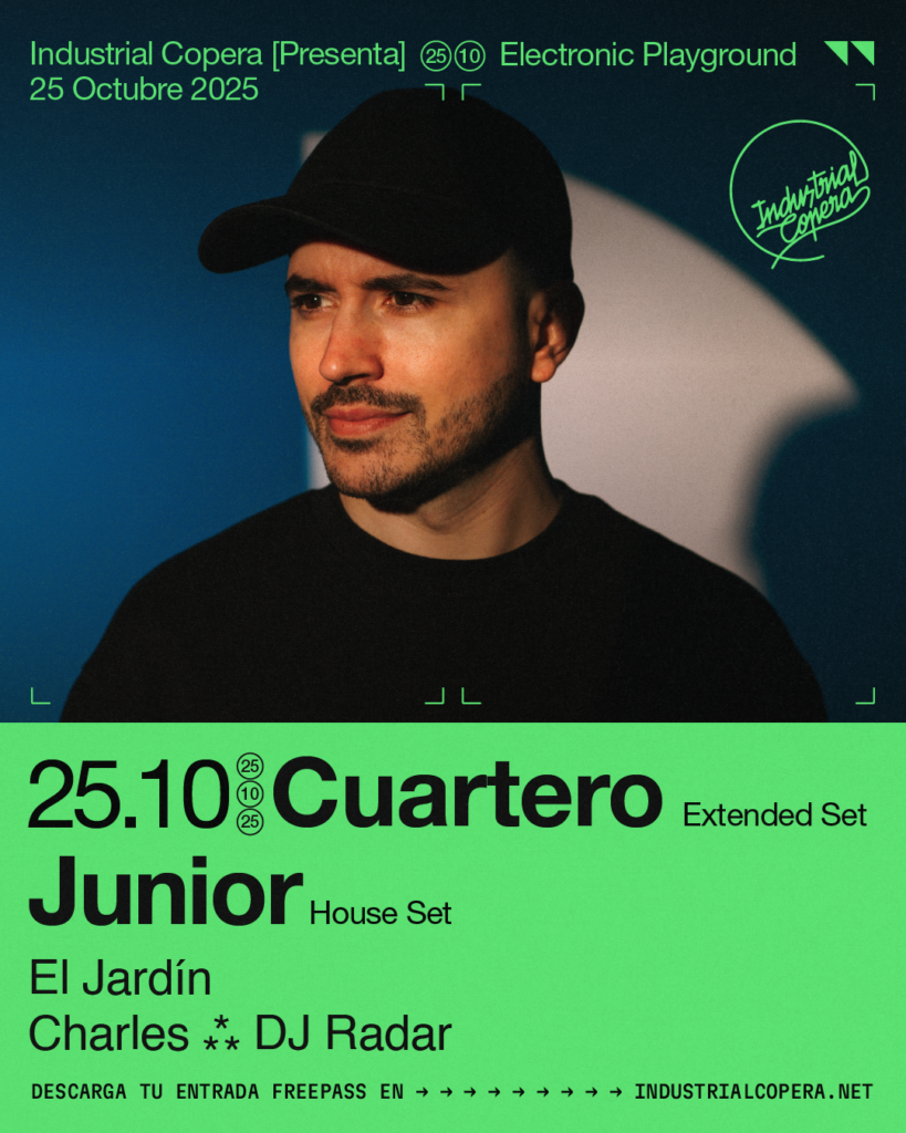 Uno de los clásicos de Industrial Copera, Junior, nos deleitará con un set del mejor sonido House. Este artista conoce el club y su energía como la palma de su mano y sabe aplicar todas las palancas que activan la pista de baile con un saber hacer que le hace especial cada vez que se pone frente a una mesa de mezclas. Y en el Jardín encontrarás una vibra diferente con las actuaciones de Charles y DJ Radar.