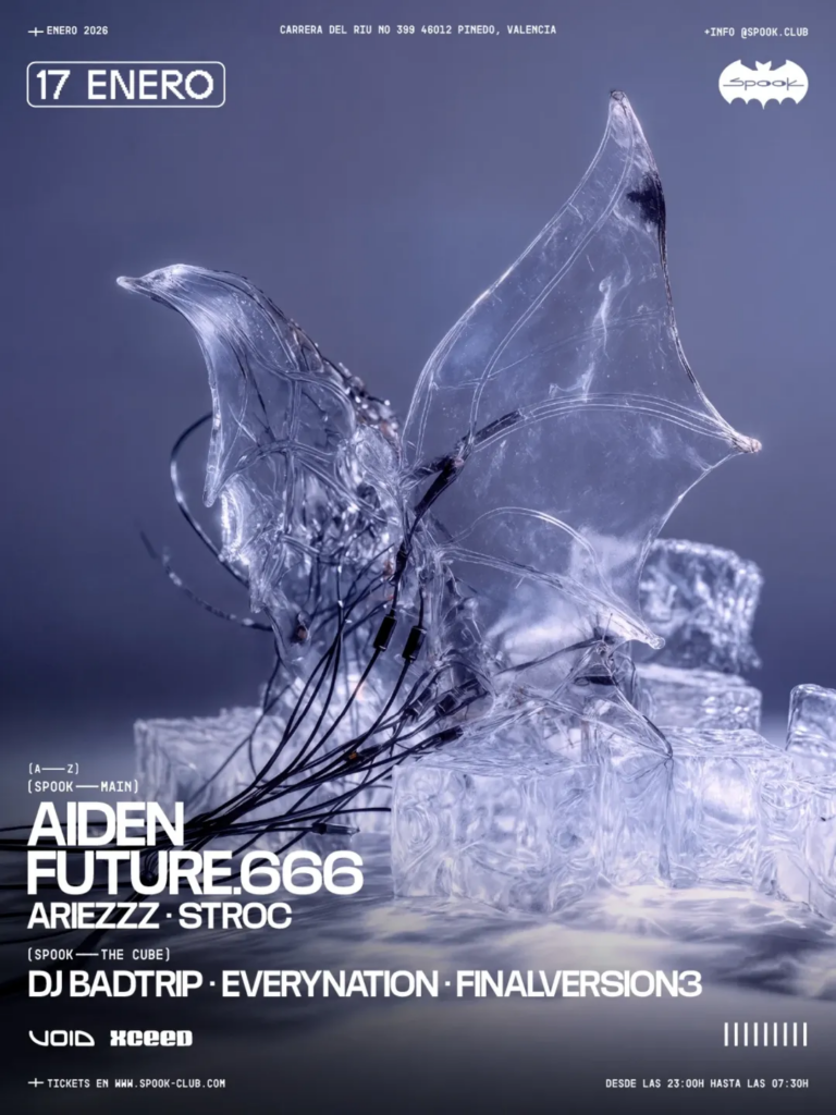 Si hablamos de calidad y de respeto por la esencia electrónica, Spook está a la vanguardia. Y lo demostrará con un evento para los verdaderos creyentes, encabezado por future.666 un artista sinónimo de fiestas techno llenas de energía y buen rollo, acompañadas de ritmos trepidantes, grooves fluidos y sesiones de baile interminables, una versión caliente del techno más potente y texturizado. future.666 siente una pasión infinita por el techno y la comunidad que lo rodea, y busca sin descanso el techno más vanguardista y de mayor calidad. Le acompañarán en la sala principal Aiden, Ariezzz y Stroc.